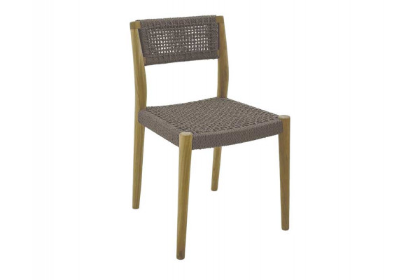 Fremstillet i lækker kerneteak. Stolen har et flot håndflettet sæde i polyrattan der er UV-bestandigt og nemt at rengøre.