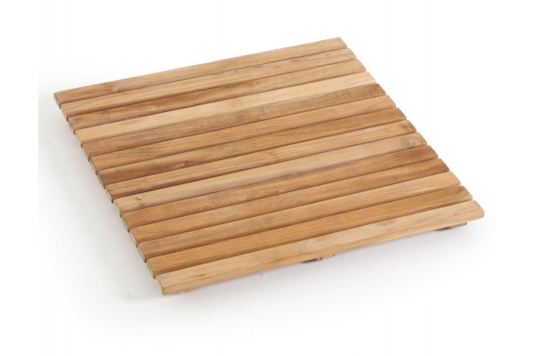 Flot bademåtte i kerneteak.Teak er meget resistent over for råd og svamp så en bademåtte i teak er både en funktionel og stilfuld løsning til badeværelset.
