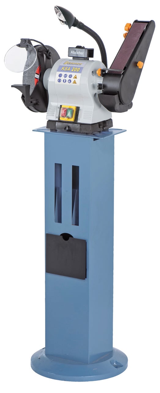 KSA 200 er en bænksliber med slibeskive og båndarm med slibebånd.