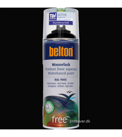 * Pris og information for varen Belton Free Spray Ral 9005 Semimat er opdateret med information modtaget fra BNFarver.dk den april 11, 2026. Vi tager forbehold for afvigelser, prisændringer og eventuelle fejl i det her anførte og de faktiske forhold hos forhandleren af produktet – Se mere info her. Bemærk også, at denne side indeholder kommercielle/sponsorerede links.