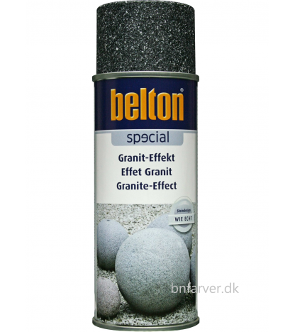* Pris og information for varen Belton Granit Effekt Sort er opdateret med information modtaget fra BNFarver.dk den april 11, 2026. Vi tager forbehold for afvigelser, prisændringer og eventuelle fejl i det her anførte og de faktiske forhold hos forhandleren af produktet – Se mere info her. Bemærk også, at denne side indeholder kommercielle/sponsorerede links.