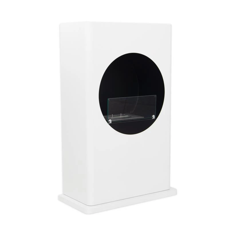 Fritstående biopejs med rund udskæring i hvid er en moderne og minimalistisk tilføjelse til ethvert rum. Dens elegante design har en rund åbning, der forbedrer synligheden af flammerne og skaber en hyggelig atmosfære. Med en varmeeffekt på 2,2 kW og en br