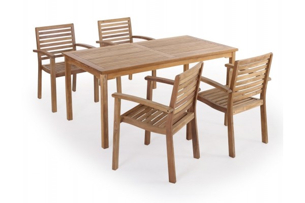 Flot sæt beståenade af Blokhus bord samt 4 Pala stabelstole. Alt i massiv kerne teaktræ.Mål:
