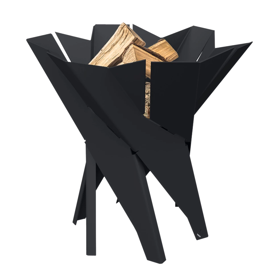 Kvalitets bålsted eller bålkurv i stål til brænde, der kan anvendes på terrassen eller i haven.