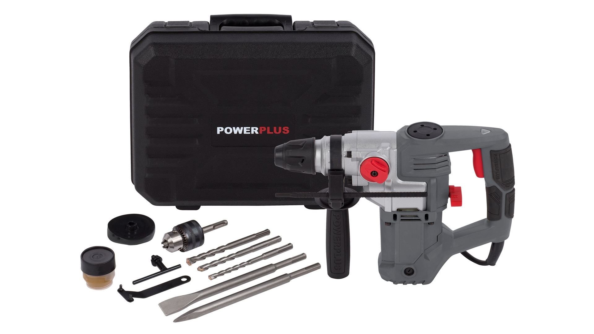 POWERPLUS E-line opfylder de nye EU direktiver.E-LINE El-værktøj er i høj kvalitet og flot design.TEKNISKE DATA Mærkespænding 220-240 V Mærkefrekvens 50 Hz Mærkeeffekt 900 W Rotationshastighed 850 min-1 Beskyttelsesklasse II Borekapacitet – beton 26 mm Bo