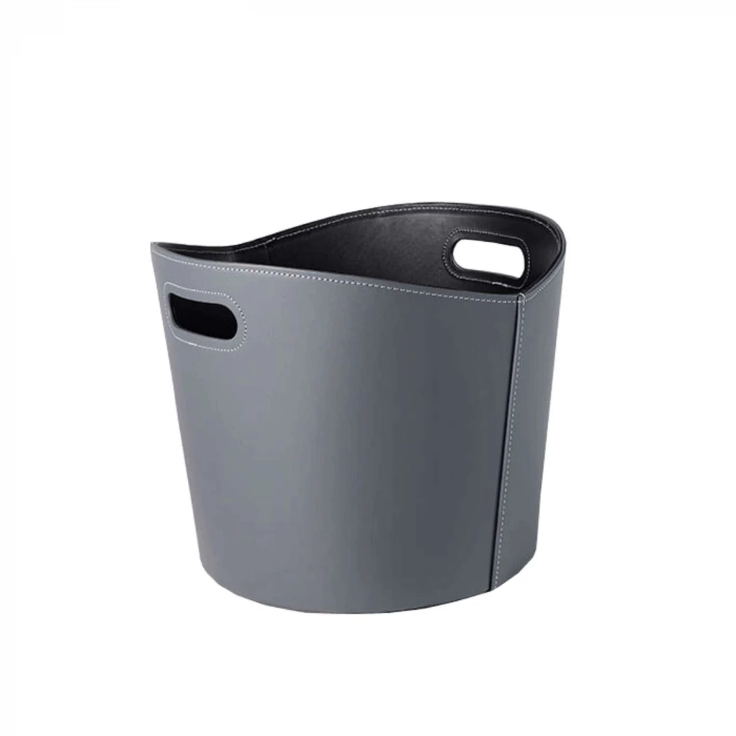 Denne brændekurv i grå imiteret læder er en stilfuld og praktisk opbevaringsløsning. Med robuste håndtag er den nem at bære og tilføjer samtidig et moderne touch til din indretning. Perfekt til opbevaring af brænde ved pejsen.