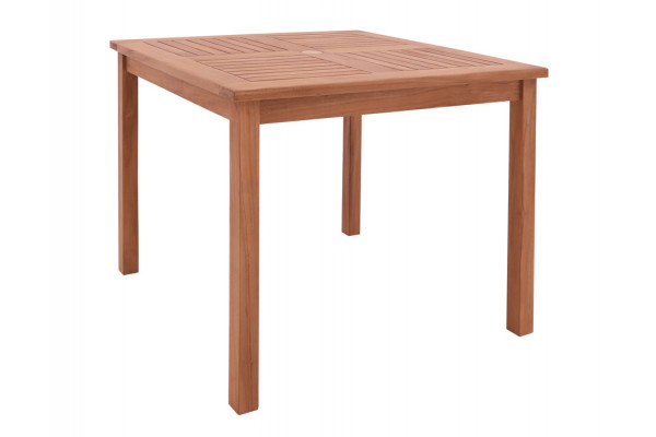 Enkelt kvadratisk havebord i kraftig kerne teaktræ.