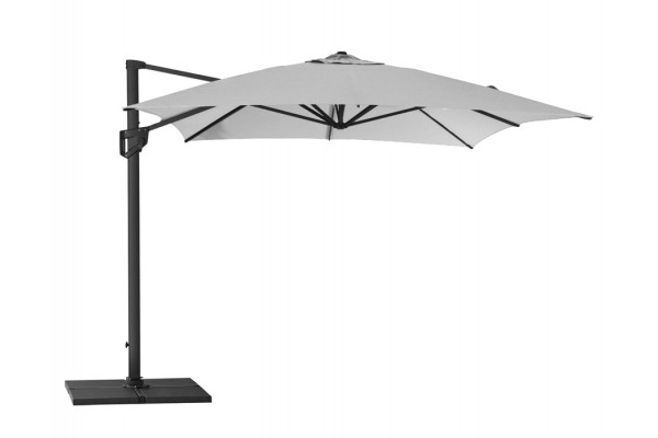 Hyde hængeparasol med stel i aluminium og Light Grey dug i 100% solution dyed polyester 280g/m2. Hyde parasollen kan rotere  – det gør det nemt for dig at fange solen.