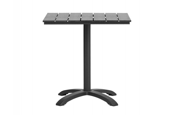 Bord i alu med sort nonwood bordplade. Højdejusterbare skruer under bordben.
