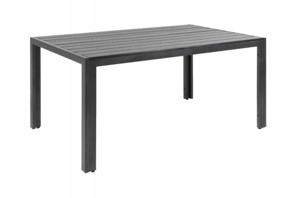 Flot og enklet bord med stel i aluminium og med sorte nonwood lameller.