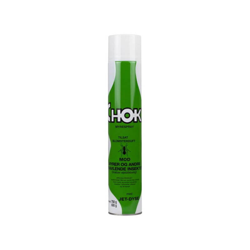 CHOK Myrespray Her får du en meget effektiv myrespray fra CHOK, som er kendt for deres bekæmpelsesmidler. Du kan bruge myresprayen både indenfor og udenfor. Effektiv til brug ude og inde. Sprayes direkte på myrerne eller myreboet. Ryst flasken før brug. K