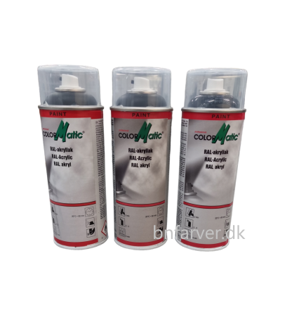 ColorMatic RAL akryl spraymaling er en premium spraymaling i standard ral farver med forskellige glans finish. Specielt formuleret til hurtig coating af industrielle overflader. Ideel til spot repair.