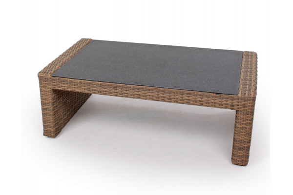 Sofabord i 2-line Dusty polyrattan-flet. Med bordplade i glas m/spraystone-top.