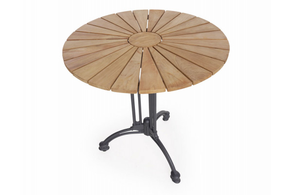 Elegant havebord i teaktræ, perfekt som cafébord med plads til op til 2 personer. Bordet har flot stel i pulverlakeret antracitgrå aluminium, der gør bordet både stilfuldt og vejrbestandigt.