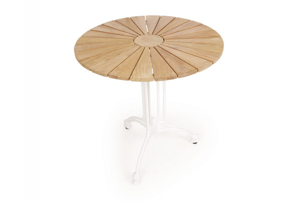 Elegant havebord i teaktræ, perfekt som cafébord med plads til op til 2 personer. Bordet har flot stel i pulverlakeret hvid aluminium, der gør bordet både stilfuldt og vejrbestandigt.