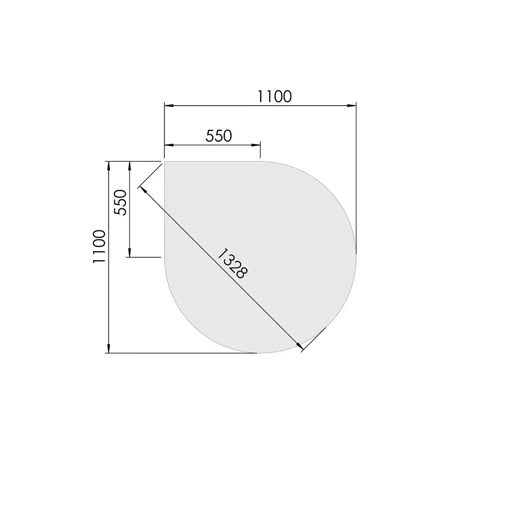 En gulvplade til pejsen er en praktisk og flot detalje til at beskytte området omkring den. Med denne variant får du en dråbeformet 6 mm glasplade, som måler 110 x 110 cm, og giver et rent udtryk til det moderne hjem.