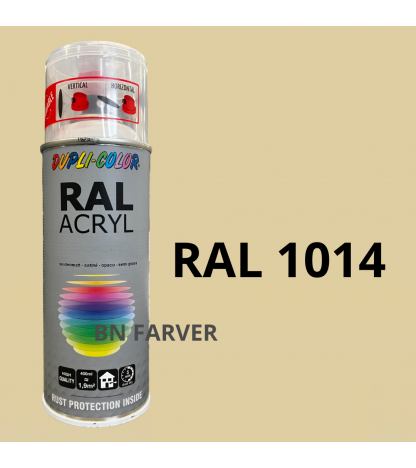 * Pris og information for varen Dupli Color RAL 1014 er opdateret med information modtaget fra BNFarver.dk den december 20, 2025. Vi tager forbehold for afvigelser, prisændringer og eventuelle fejl i det her anførte og de faktiske forhold hos forhandleren af produktet – Se mere info her. Bemærk også, at denne side indeholder kommercielle/sponsorerede links.