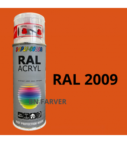 * Pris og information for varen Dupli Color RAL 2009 er opdateret med information modtaget fra BNFarver.dk den december 20, 2025. Vi tager forbehold for afvigelser, prisændringer og eventuelle fejl i det her anførte og de faktiske forhold hos forhandleren af produktet – Se mere info her. Bemærk også, at denne side indeholder kommercielle/sponsorerede links.