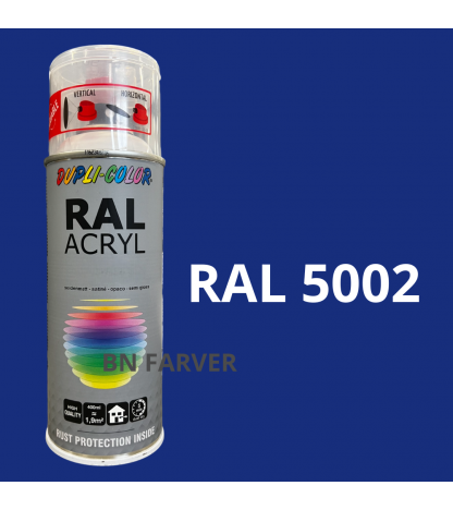 * Pris og information for varen Dupli Color RAL 5002 er opdateret med information modtaget fra BNFarver.dk den december 20, 2025. Vi tager forbehold for afvigelser, prisændringer og eventuelle fejl i det her anførte og de faktiske forhold hos forhandleren af produktet – Se mere info her. Bemærk også, at denne side indeholder kommercielle/sponsorerede links.