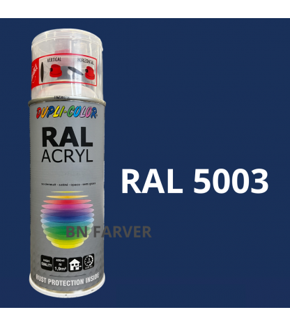 * Pris og information for varen Dupli Color RAL 5003 er opdateret med information modtaget fra BNFarver.dk den december 20, 2025. Vi tager forbehold for afvigelser, prisændringer og eventuelle fejl i det her anførte og de faktiske forhold hos forhandleren af produktet – Se mere info her. Bemærk også, at denne side indeholder kommercielle/sponsorerede links.