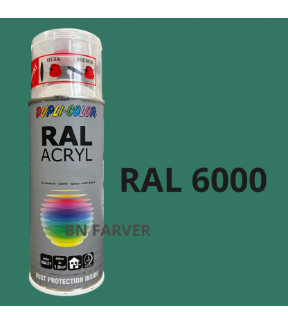 * Pris og information for varen Dupli Color RAL 6000 er opdateret med information modtaget fra BNFarver.dk den december 21, 2025. Vi tager forbehold for afvigelser, prisændringer og eventuelle fejl i det her anførte og de faktiske forhold hos forhandleren af produktet – Se mere info her. Bemærk også, at denne side indeholder kommercielle/sponsorerede links.