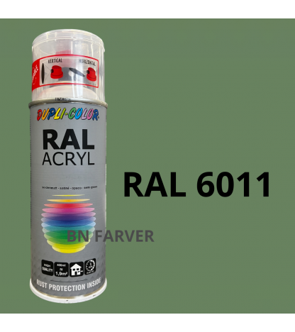 * Pris og information for varen Dupli Color RAL 6011 er opdateret med information modtaget fra BNFarver.dk den december 28, 2025. Vi tager forbehold for afvigelser, prisændringer og eventuelle fejl i det her anførte og de faktiske forhold hos forhandleren af produktet – Se mere info her. Bemærk også, at denne side indeholder kommercielle/sponsorerede links.