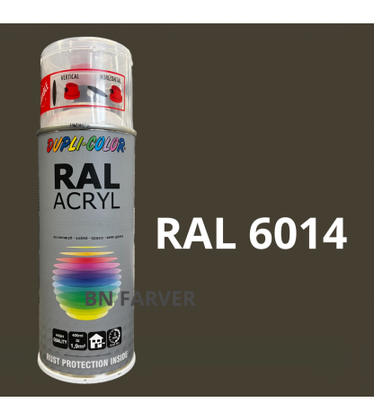 * Pris og information for varen Dupli Color RAL 6014 er opdateret med information modtaget fra BNFarver.dk den december 28, 2025. Vi tager forbehold for afvigelser, prisændringer og eventuelle fejl i det her anførte og de faktiske forhold hos forhandleren af produktet – Se mere info her. Bemærk også, at denne side indeholder kommercielle/sponsorerede links.