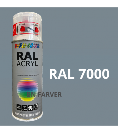 * Pris og information for varen Dupli Color RAL 7000 er opdateret med information modtaget fra BNFarver.dk den december 28, 2025. Vi tager forbehold for afvigelser, prisændringer og eventuelle fejl i det her anførte og de faktiske forhold hos forhandleren af produktet – Se mere info her. Bemærk også, at denne side indeholder kommercielle/sponsorerede links.