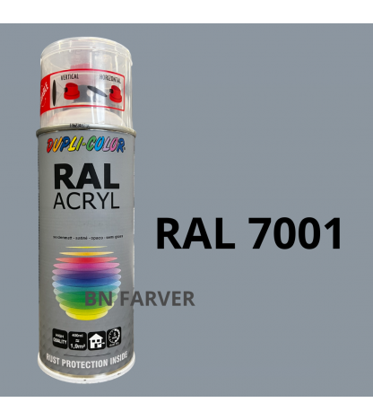 * Pris og information for varen Dupli Color RAL 7001 er opdateret med information modtaget fra BNFarver.dk den december 28, 2025. Vi tager forbehold for afvigelser, prisændringer og eventuelle fejl i det her anførte og de faktiske forhold hos forhandleren af produktet – Se mere info her. Bemærk også, at denne side indeholder kommercielle/sponsorerede links.