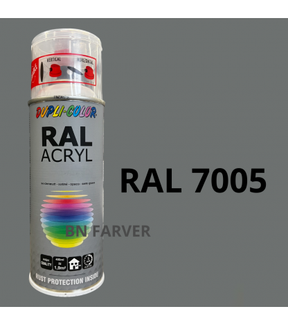 * Pris og information for varen Dupli Color RAL 7005 er opdateret med information modtaget fra BNFarver.dk den december 28, 2025. Vi tager forbehold for afvigelser, prisændringer og eventuelle fejl i det her anførte og de faktiske forhold hos forhandleren af produktet – Se mere info her. Bemærk også, at denne side indeholder kommercielle/sponsorerede links.