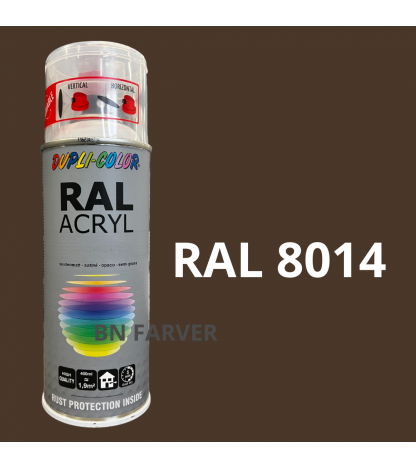 * Pris og information for varen Dupli Color RAL 8014 er opdateret med information modtaget fra BNFarver.dk den december 28, 2025. Vi tager forbehold for afvigelser, prisændringer og eventuelle fejl i det her anførte og de faktiske forhold hos forhandleren af produktet – Se mere info her. Bemærk også, at denne side indeholder kommercielle/sponsorerede links.