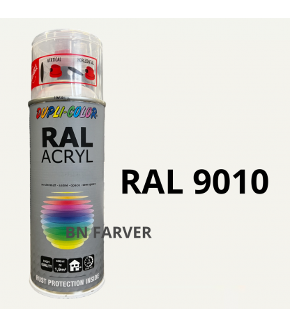 * Pris og information for varen Dupli Color RAL 9010 – Mat er opdateret med information modtaget fra BNFarver.dk den januar 3, 2026. Vi tager forbehold for afvigelser, prisændringer og eventuelle fejl i det her anførte og de faktiske forhold hos forhandleren af produktet – Se mere info her. Bemærk også, at denne side indeholder kommercielle/sponsorerede links.