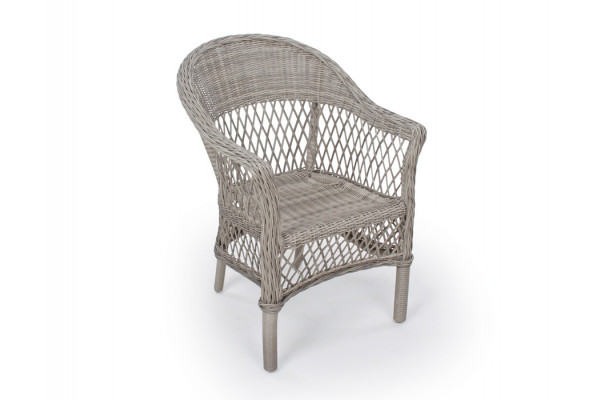 Elegant stabelstol i flot lysegrå polyrattan flet.