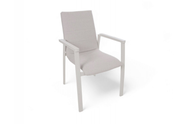 Stolen er produceret i gråhvid aluminium og med sæde i slidstærkt beigefarvet polyester.