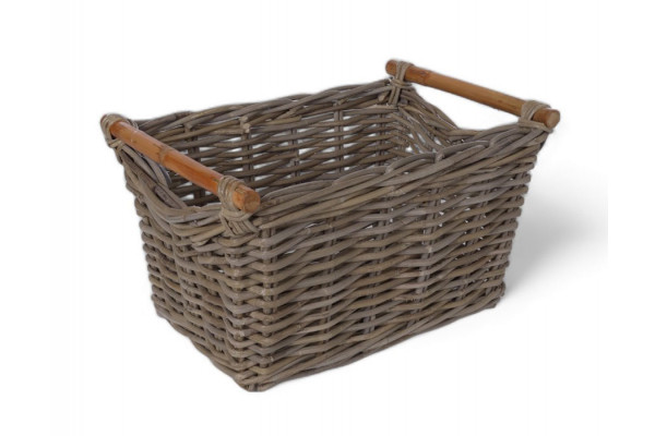 Firkantet kurv i håndflettet kubu naturrattan. Kurven har håndtag af bambus.