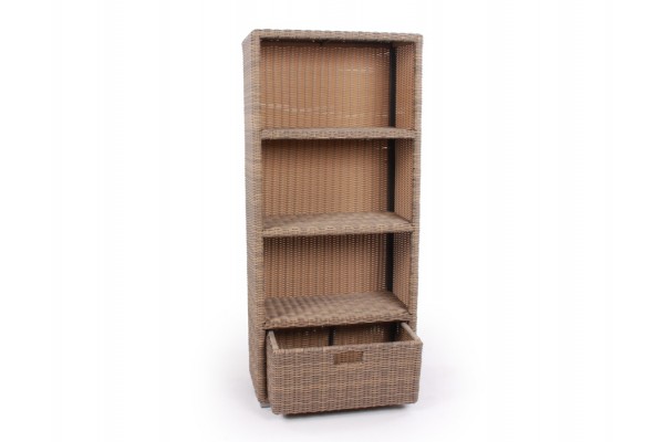 Reol fremstillet i kraftig dusty polyrattanflet. Med skuffe nederst.