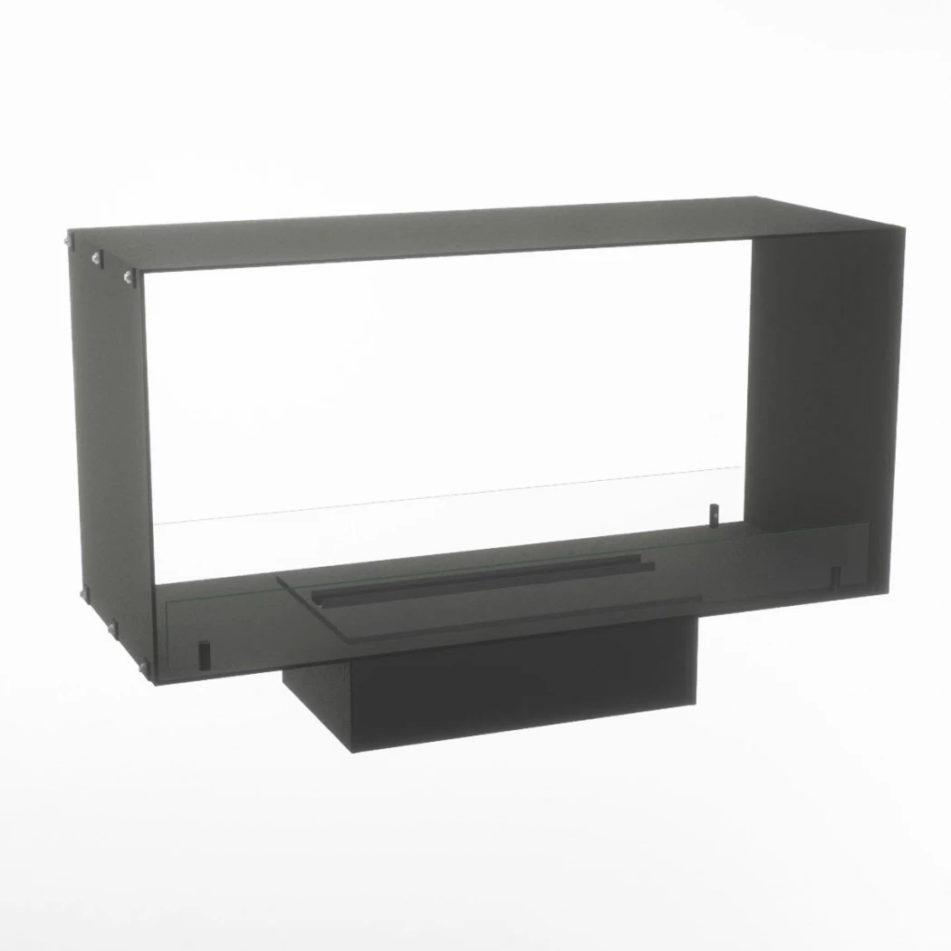 Foco Myst Two 1000 gennemgående hybridpejs til at bygge ind i væggen mellem to rum.