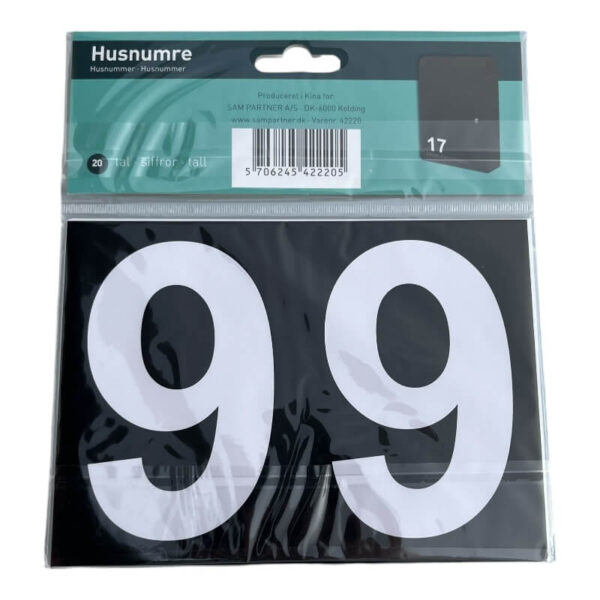 Folie husnumre til postkasse Vælg mellem folietal i enten sort eller hvid med selvklæbende. Indeholder: 2 stk. á 0123456789 Tallene er 10 cm høje. Er lette at montere. Vi anbefaler at du rengør postkassen/overfladen med sprit inden påsætning. SORT = sorte