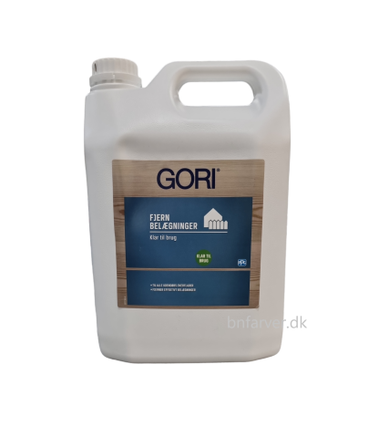 * Pris og information for varen Gori Fjern Belægninger klar til brug 5 L er opdateret med information modtaget fra BNFarver.dk den februar 28, 2026. Vi tager forbehold for afvigelser, prisændringer og eventuelle fejl i det her anførte og de faktiske forhold hos forhandleren af produktet – Se mere info her. Bemærk også, at denne side indeholder kommercielle/sponsorerede links.