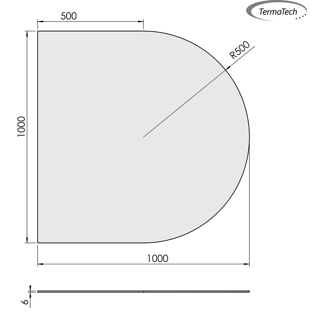 Halvrund gulvplade i glas – 100 x 100 cm