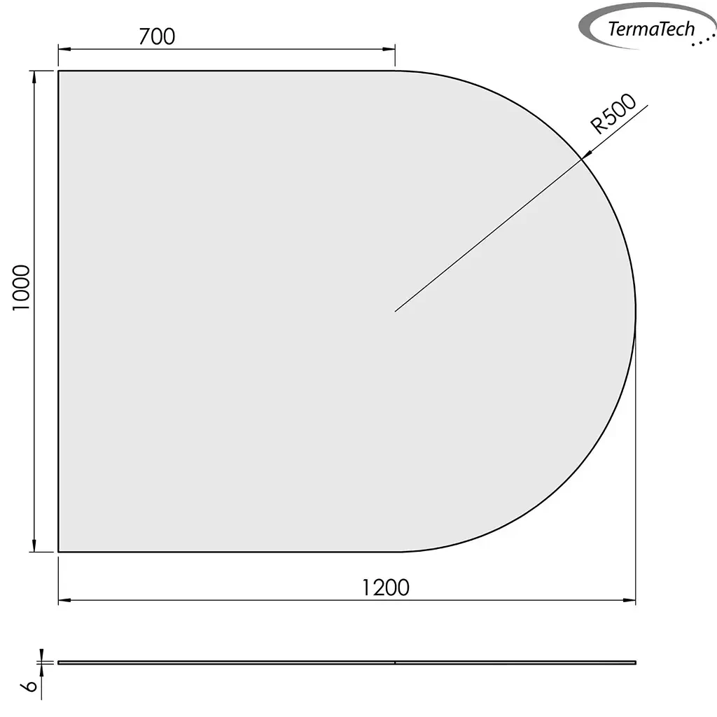 En gulvplade til pejsen er en praktisk og flot detalje til at beskytte området omkring den. Med denne variant får du en 6 mm glasplade, som giver et rent udtryk til det moderne hjem. Måler 100 x 120 cm i halvrund udformning.