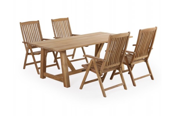 Sættet består af 4 stk. Devon positionsstole og Hercules plankebord str. 100×200 cm.