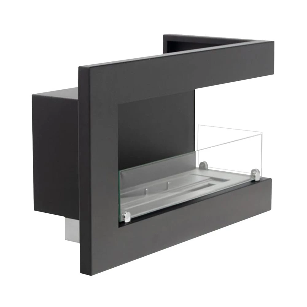 Højrevendt, kompakt og prisvenlig biopejs til indbygning i en væg. Pejsen har en bredde på 65 cm og mulighed for at se flammerne fra to sider. Den sorte pulverlakerede stålkonstruktion og sikkerhedsglas beskytter flammerne mod træk. Brandkarret rummer 3 l