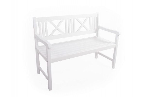 Flot hvid bænk i skandinavisk stil. I hvidmalet mahogni-træ.