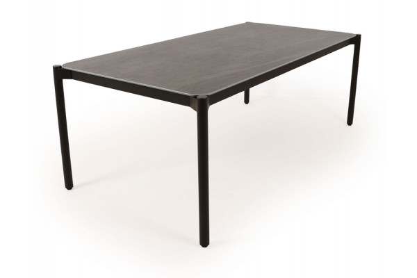 Stilfuldt og funktionelt havebord med stel i sort pulverlakeret aluminium.