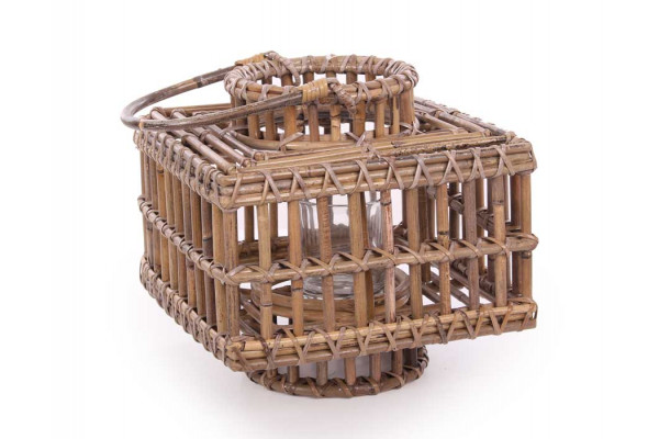 Flot lanterne i flettet bambus. Med hank og glasindsats.