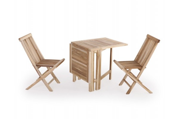 Dette sæt består af Lærke butterfly-bord og 2 stk. Køln foldestole. Det er fremstillet i Classic teaktræ. Er genialt sæt til altanen. Bordet kan klappes sammen på 2 sider.