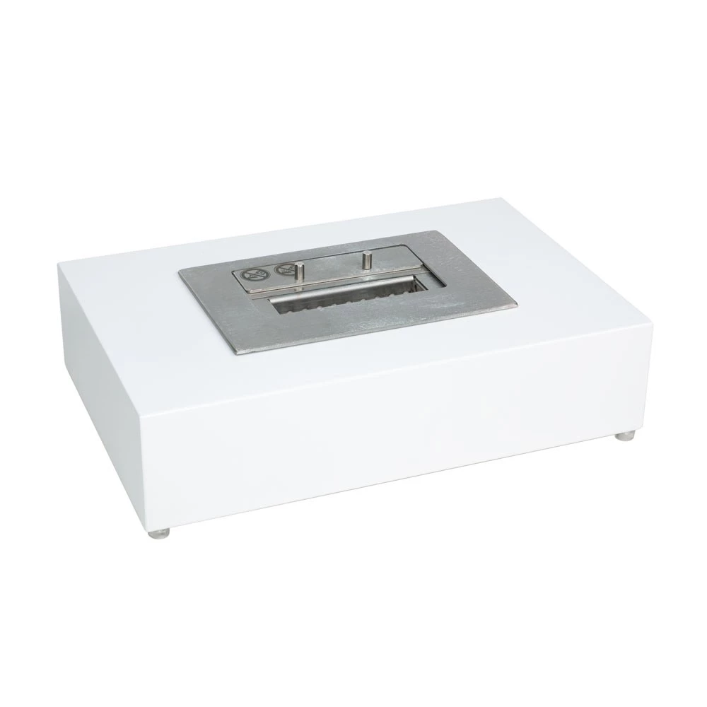 London bioethanol pejs i hvid er en elegant og minimalistisk pejs, der kan placeres frit i hjemmet eller inde i en eksisterende pejs for at omdanne den til en biopejs. Med en brændetid på op til 6 timer pr. opfyldning skaber den en langvarig hyggelig atmo