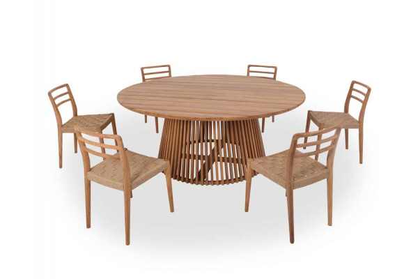 Fantastisk flot sæt med Luna bord og 6 Duri stole. Alt fremstillet i kerne teaktræ fra Plantage i Indonesien