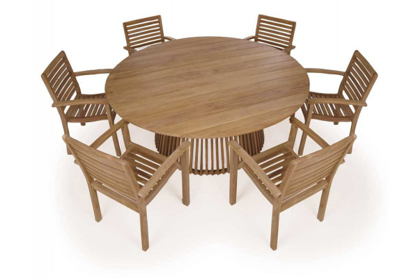 Fantastisk flot sæt med Luna bord fremstillet i kerne teaktræ fra Plantage i Indonesien.  Hertil 6 Pala stabelstole fremstillet i kerneteak.